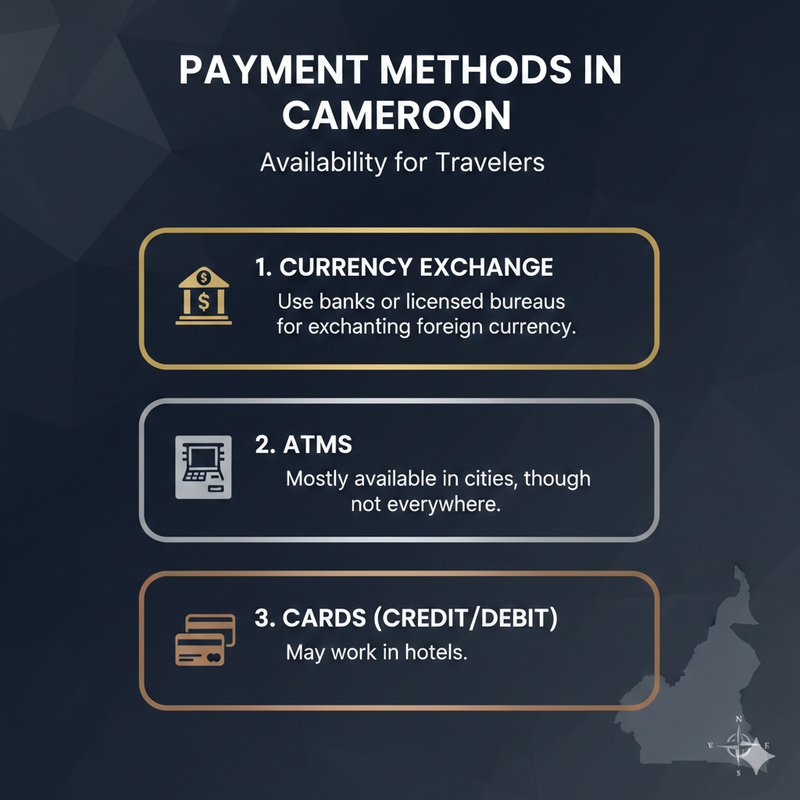 - Licensed foreign exchange houses in Yaoundé and Douala often offer good rates.