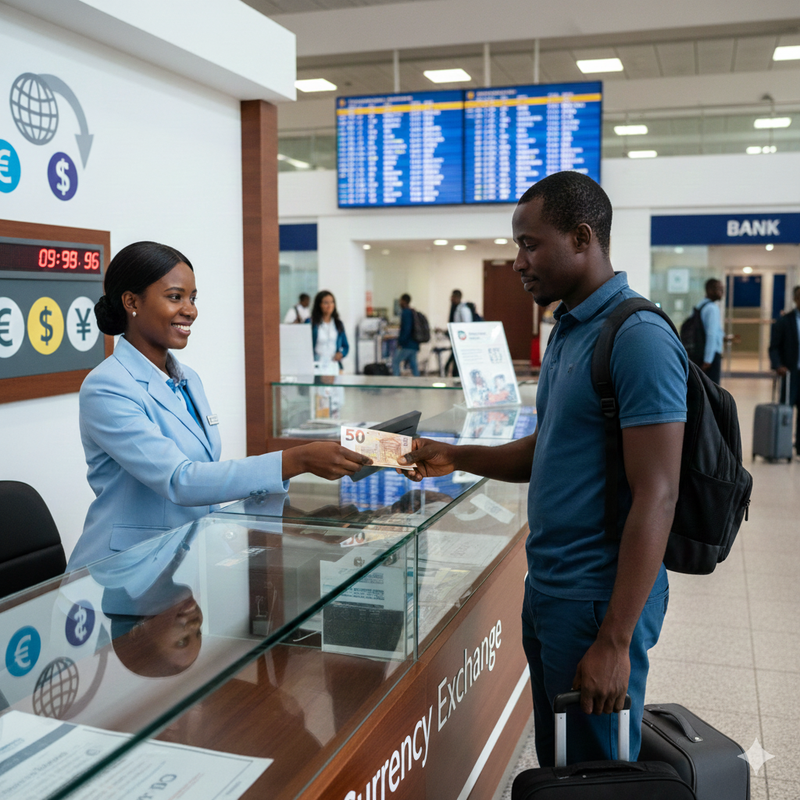 Are currency exchange services available at the airport?